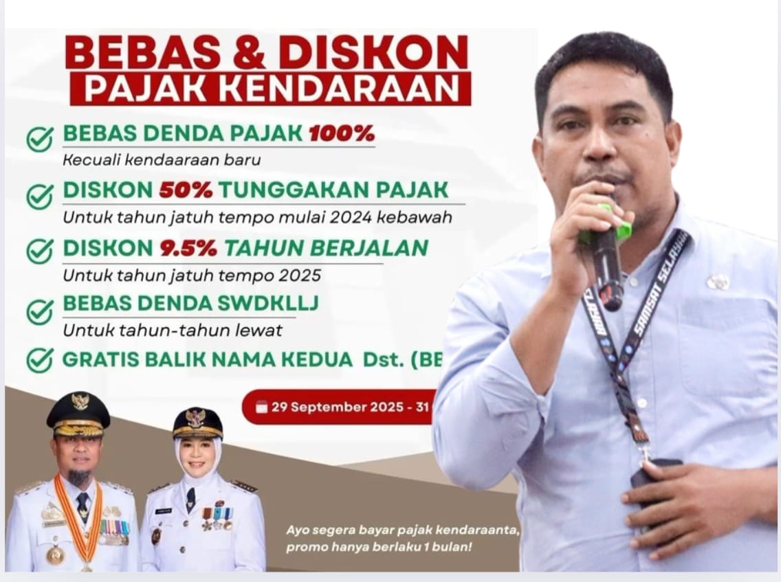 “Yang penting jangan ditunda, karena program ini hanya berlaku satu bulan. Mari kita sama-sama manfaatkan demi kelancaran administrasi kendaraan sekaligus membantu peningkatan pendapatan daerah,” jelasnya.