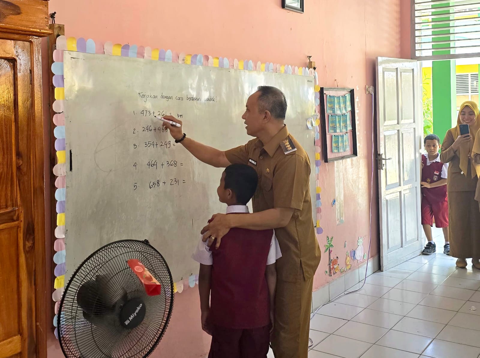 Dalam kunjungan ke sekolah, Bupati didampingi Kadis Pendidikan Masdar J Pratama, menyapa langsung para siswa dan memasuki sejumlah ruang kelas.